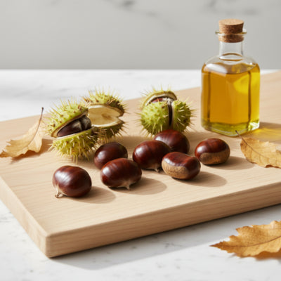 Die Rosskastanie ist ein großer, weit verbreiteter Laubbaum. Medizinisch und kosmetisch relevant sind vor allem die Extrakte aus den Samen (Kastanien). Der wichtigste Inhaltsstoff ist hier das Aescin, ein Saponingemisch, das traditionell in Präparaten für die Beine verwendet wird.