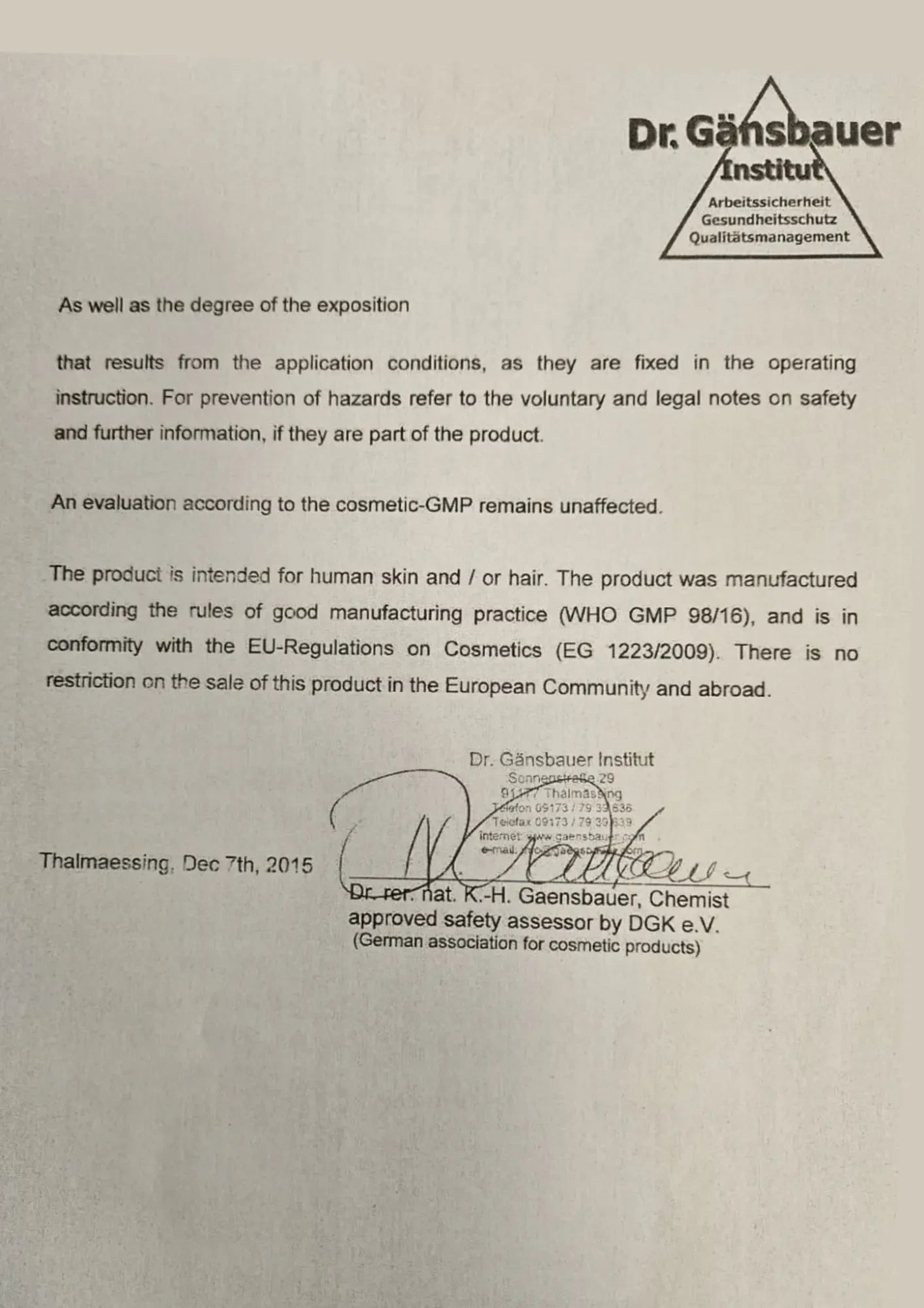 - Zertifiziert nach EU-Kosmetikverordnung (EG) Nr. 1223/2009